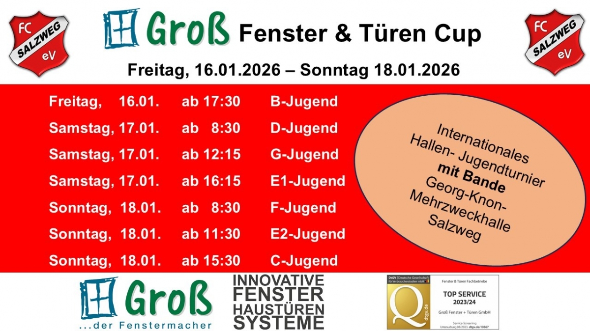 Kommendes Wochenende findet der mittlerweile 3. Groß Fenster und Türen Cup mit 56 Jugendmannschaften statt.